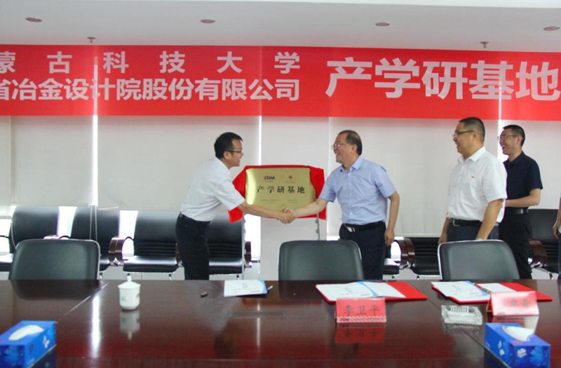 2020年6月29日,山冶設(shè)計(jì)與內(nèi)蒙古科技大學(xué)“產(chǎn)學(xué)研”基地簽約儀式在高新區(qū)辦公樓舉行。內(nèi)蒙古科技大學(xué)能源與環(huán)境學(xué)院黨總支書記李衛(wèi)平一行4人,公司董事長魏新民,黨委書記谷卓奇及相關(guān)科室人員共同出席了簽約儀式。