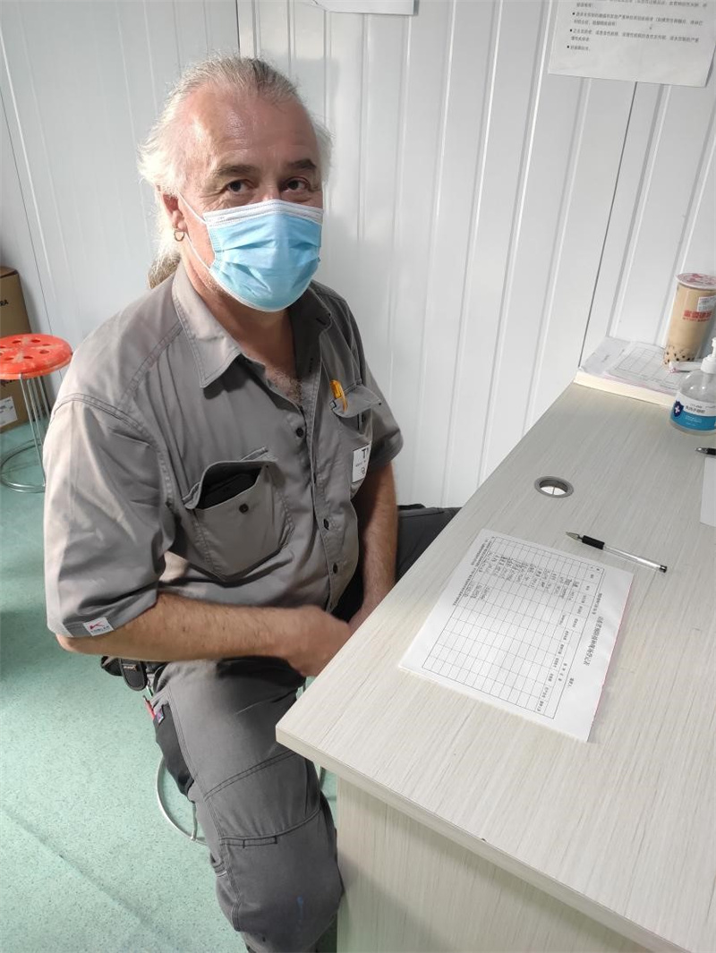 Olaf Mischur(音譯:奧樂夫)58歲來(lái)自德國(guó),現(xiàn)服務(wù)于山鋼股份萊蕪分公司新舊動(dòng)能轉(zhuǎn)換1號(hào) 3800m3高爐現(xiàn)場(chǎng),主要負(fù)責(zé)指導(dǎo)TMT開鐵口機(jī)設(shè)備的安裝和調(diào)試工作。