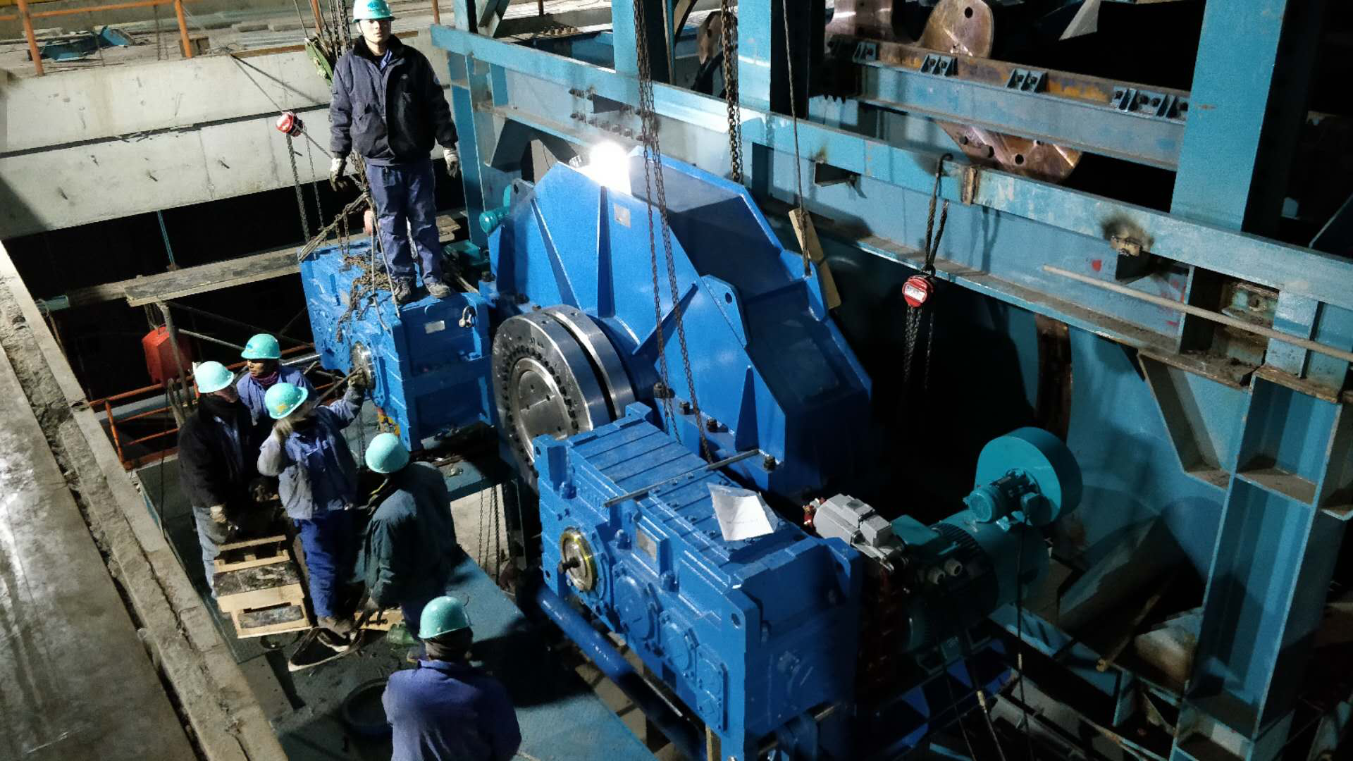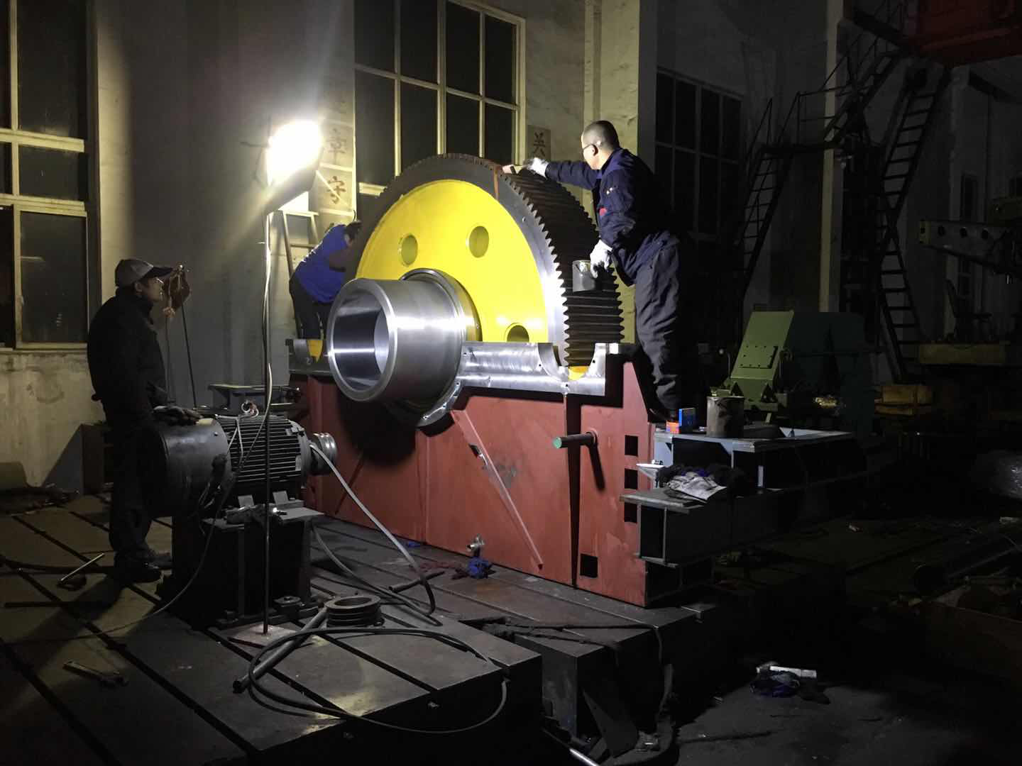設備到場后,項目部根據(jù)之前制定的施工方案,連夜組織安裝隊伍卸車、安裝,安裝過程中,由于柔傳設備與燒結機頭輪設備為兩廠家制造,制造精度存在偏差,安裝前經(jīng)過反復測量還是發(fā)生了一次減速機在臨近完成穿軸工序時無法正常進行的狀況,此時已是第二天凌晨4點。項目部現(xiàn)場人員當即決定退出一次減速機進行處理后重新穿軸,待設備處理好第二次穿軸完成時已是第二天上午9點16分。期間,山冶設計日照燒結項目部、監(jiān)理人員24小時連夜督戰(zhàn),一刻都沒有休息,二十冶施工人員更是一鼓作氣完成了扭力桿、傳動電機、二次減速機的安裝,甚至吃飯都在現(xiàn)場臨時解決。電氣安裝人員與調(diào)試人員隨時待命,在設備安裝的同時穿插完成了電機的接線與調(diào)試工作。到下午6點18分,連續(xù)奮戰(zhàn)28小時后完成了整個柔傳設備的安裝調(diào)試工作,提前完成了預先制定的春節(jié)前施工任務。而在精品基地一期一步時,此安裝任務用了整整七天!這次僅用了28小時!