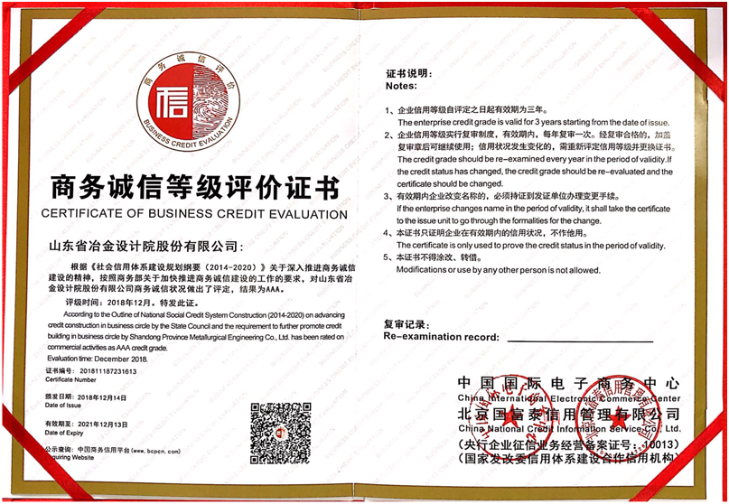 本次信用評級經(jīng)過資料申報、行業(yè)調查、周邊訪問等一系列社會評估工作程序,經(jīng)國家商務部中國國際電子商務中心、北京國富泰信用管理有限公司對公司的信用記錄、管理能力、經(jīng)營水平、社會形象、財務狀況、顧客滿意度、發(fā)展前景等綜合實力進行嚴格、全面的分析和審核,最終公司獲得一致通過,并被評為商務誠信等級AAA級信用企業(yè)。這是對企業(yè)信用的最高等級評價,標志著公司強大的企業(yè)綜合實力和良好企業(yè)信用度獲得了高度認可。