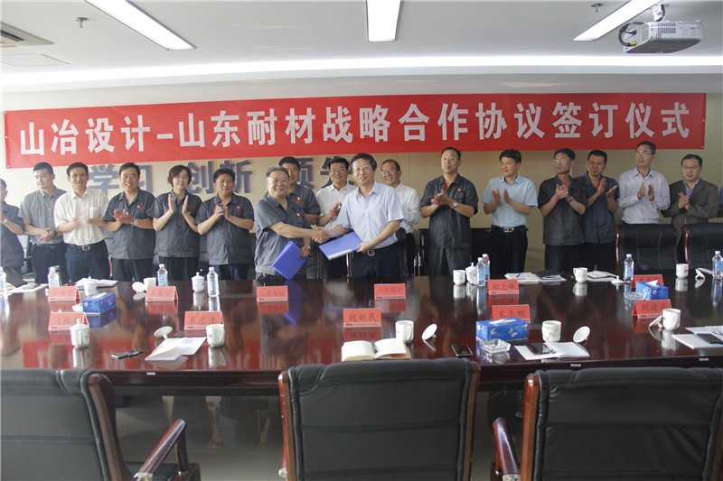 2019年5月16日,山冶設(shè)計(jì)與山東耐材戰(zhàn)略合作協(xié)議在濟(jì)南山冶設(shè)計(jì)辦公樓簽訂。山鋼集團(tuán)黨委委員、副總經(jīng)理王向東,戰(zhàn)略規(guī)劃部副部長郝之峰,山冶設(shè)計(jì)董事長魏新民,總經(jīng)理衣忠德,副總經(jīng)理宋志順,山東耐材集團(tuán)黨委書記、董事長車連房,黨委副書記、總經(jīng)理李文亮,副總經(jīng)理王文學(xué)、張延敏及相關(guān)人員出席了簽訂儀式。