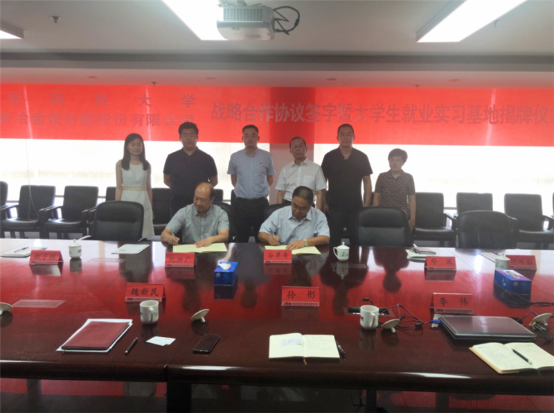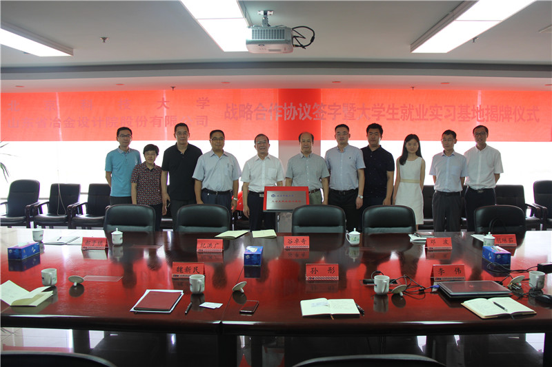 2019年7月23日,山冶設(shè)計與北京科技大學(xué)戰(zhàn)略合作框架協(xié)議簽字儀式暨北京科技大學(xué)大學(xué)生就業(yè)實習(xí)基地揭牌儀式在濟(jì)南舉行。北京科技大學(xué)土木與資源工程學(xué)院黨委書記紀(jì)洪廣,黨委副書記鄧波一行4人,公司董事長魏新民,黨委書記谷卓奇,副總經(jīng)理孫彤及相關(guān)科室人員出席了簽字儀式。