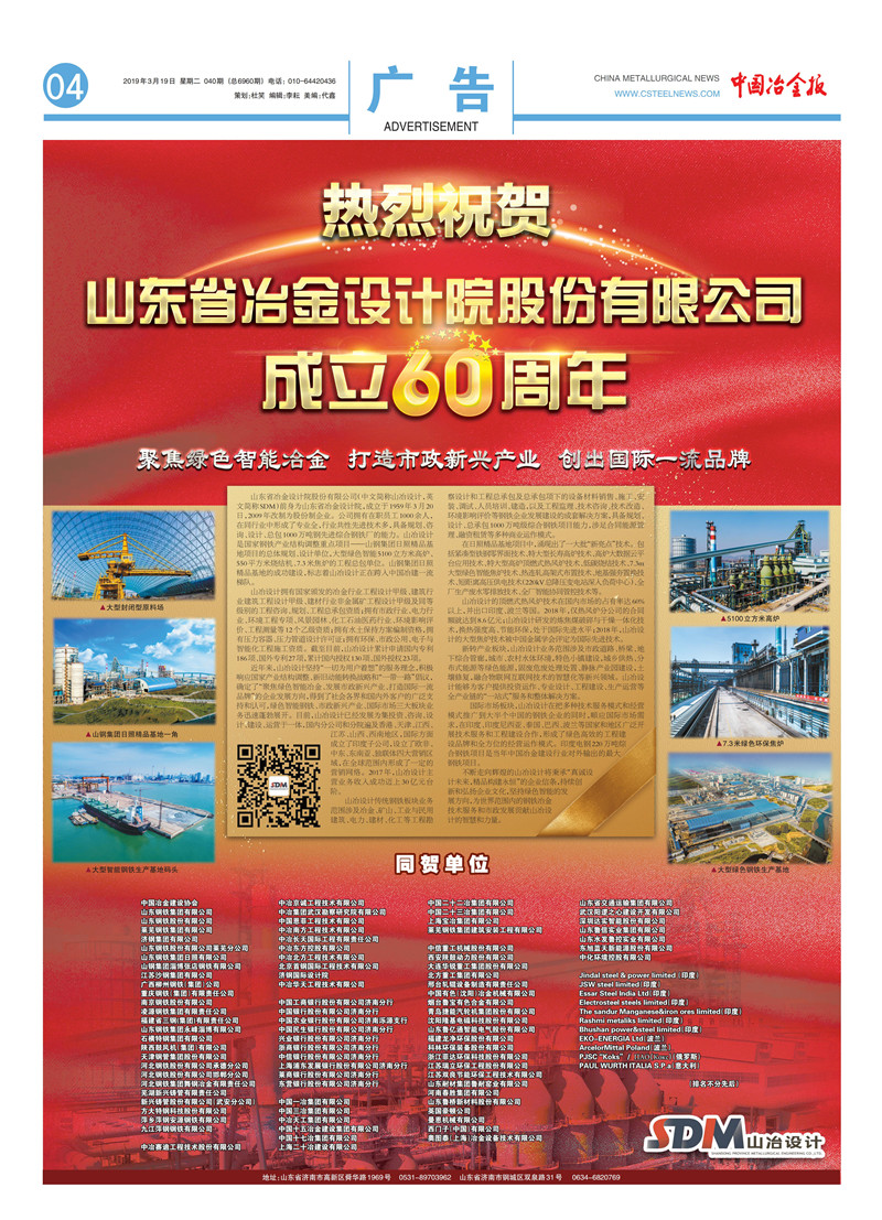 熱烈祝賀山東省冶金設(shè)計院股份有限公司成立60周年