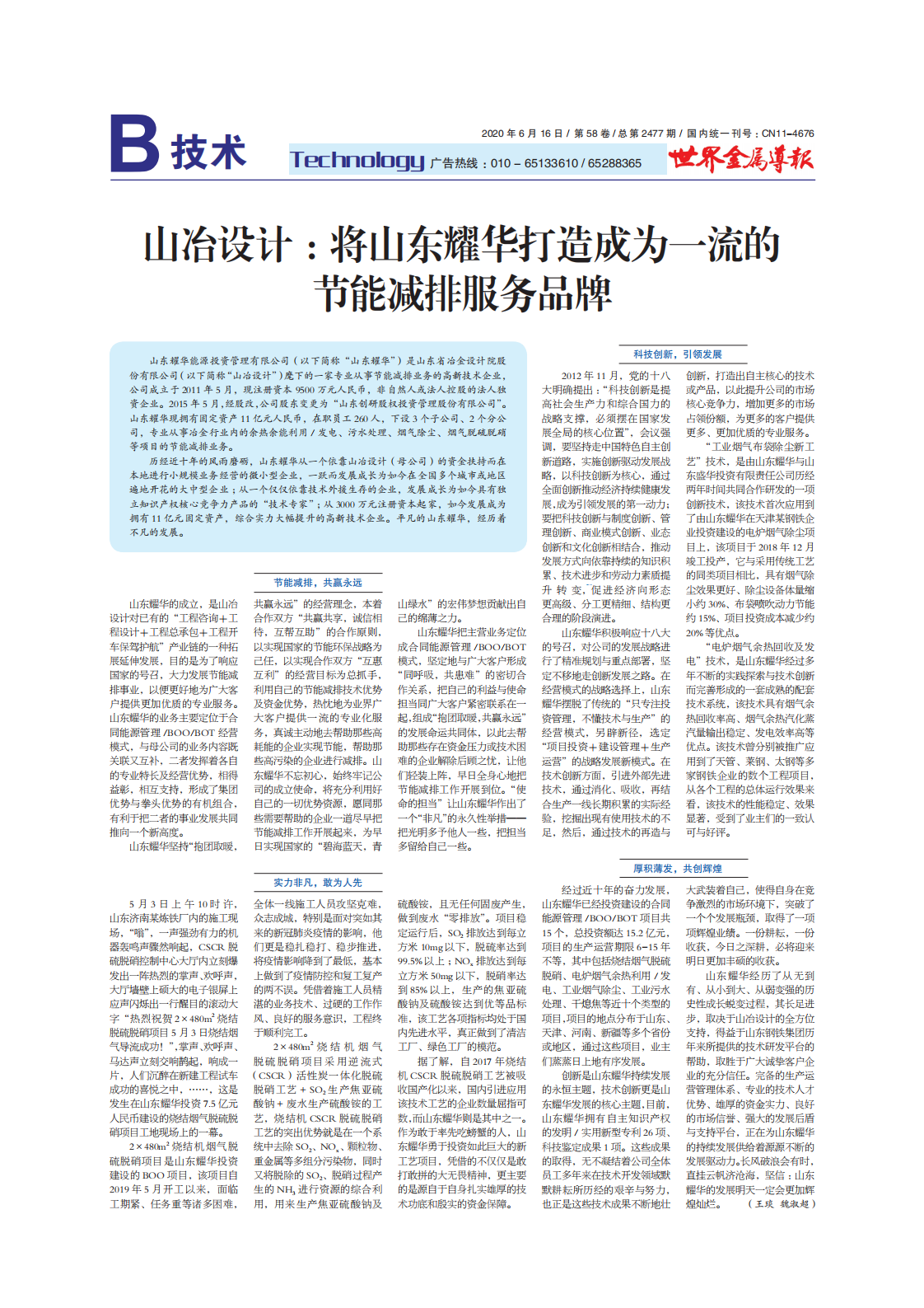 山冶設(shè)計:將山東耀華打造成為一流的節(jié)能減排服務(wù)品牌