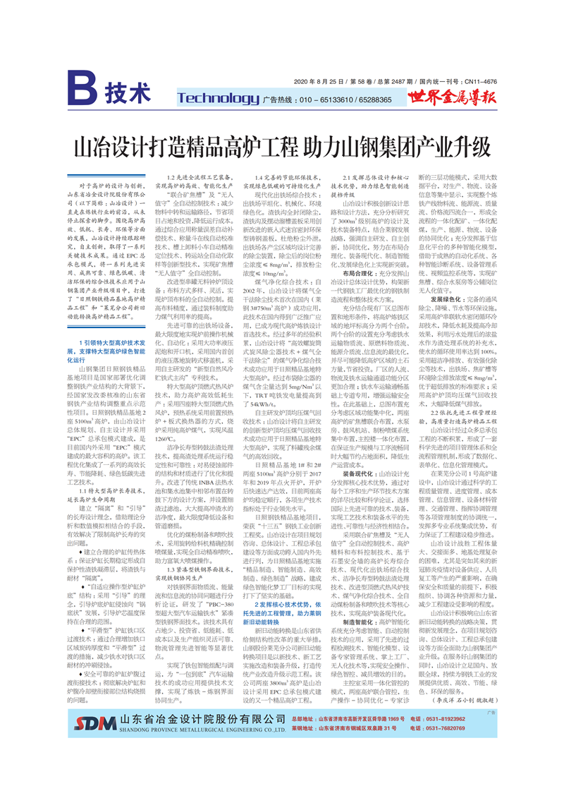 山冶設(shè)計打造精品高爐工程 助力山鋼集團產(chǎn)業(yè)升級